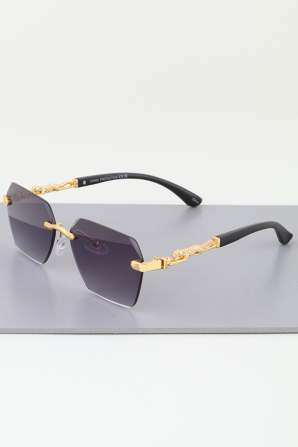 • * Introducing the "Classic Cheetah Rimless Sunglasses" – a perfect blend of elegance and boldness, these gold and silver rimless sunglasses from H&D Accessories will elevate your style to new heights. Embrace the classic design with a modern twist that makes a statement wherever you go.