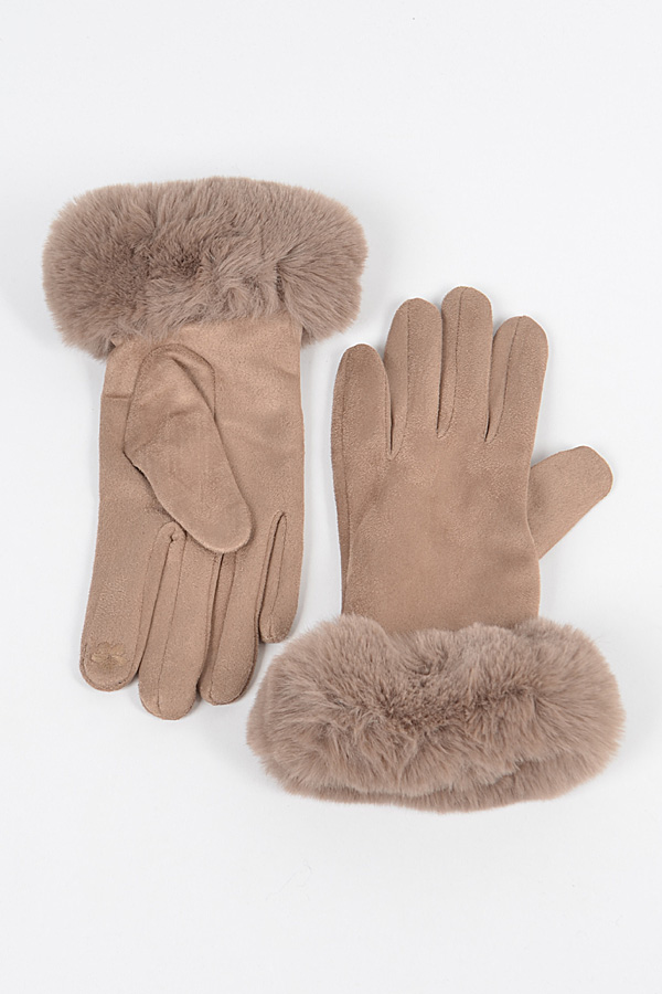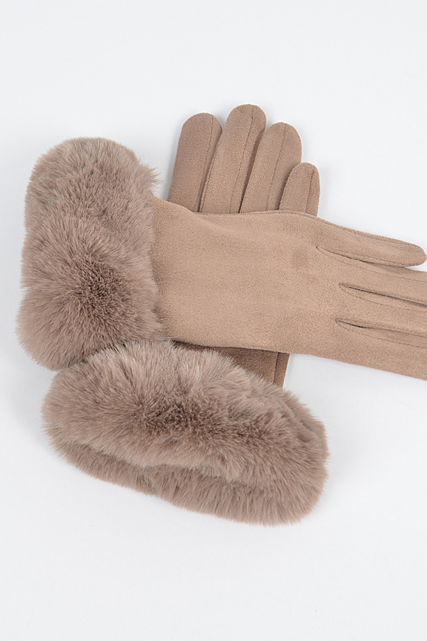 - * Introducing "Faux Suede Gloves W faux Fur" – the perfect blend of elegance and warmth. These faux suede gloves with luxurious faux fur cuffs are designed to elevate your winter wardrobe while keeping your hands cozy. Embrace the chic style and comfort that H&D Accessories brings to your fingertips.A