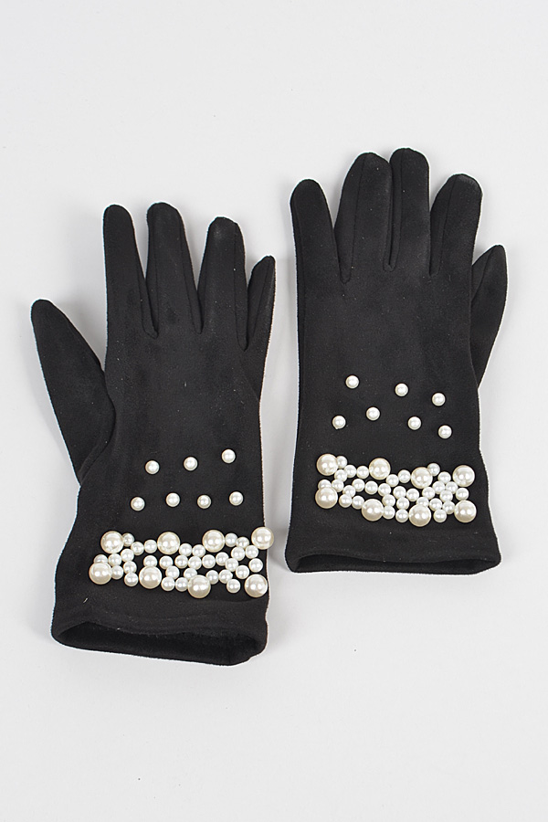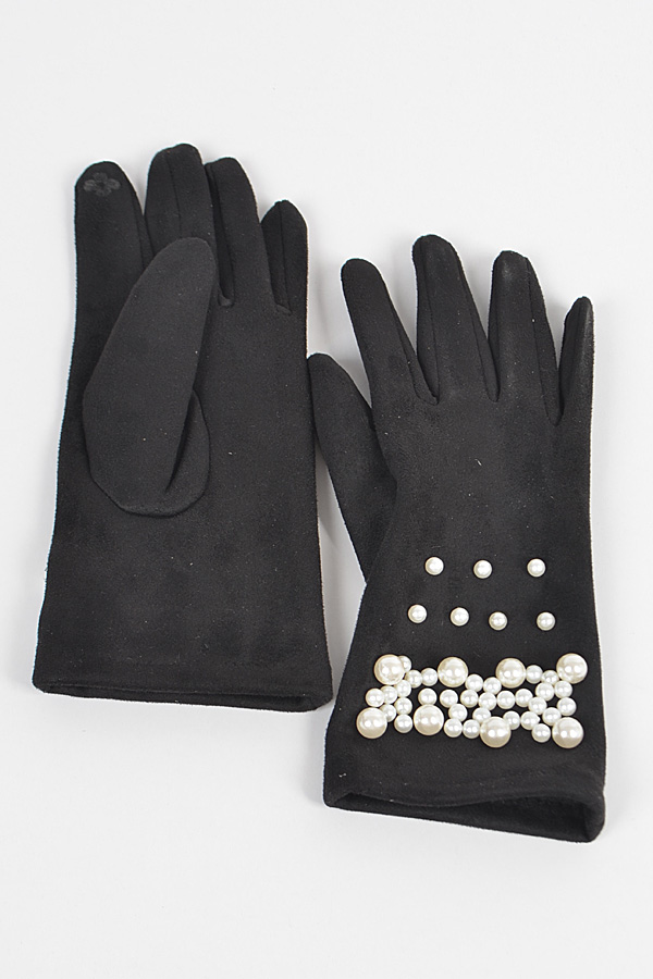 - * Faux Suede Gloves W Imitation Pearl