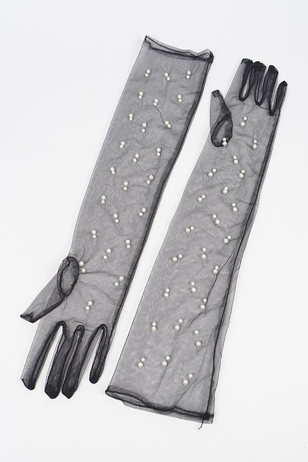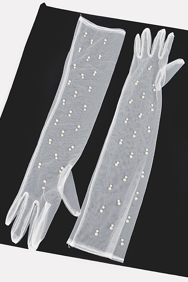 - * Introducing "Mesh Long Gloves" – where sophistication meets style. These gloves adorned with exquisite faux pearls are the perfect accessory to elevate any outfit. Whether you're attending a formal event or simply want to add a touch of glamour to your everyday look, these gloves will make a statement.