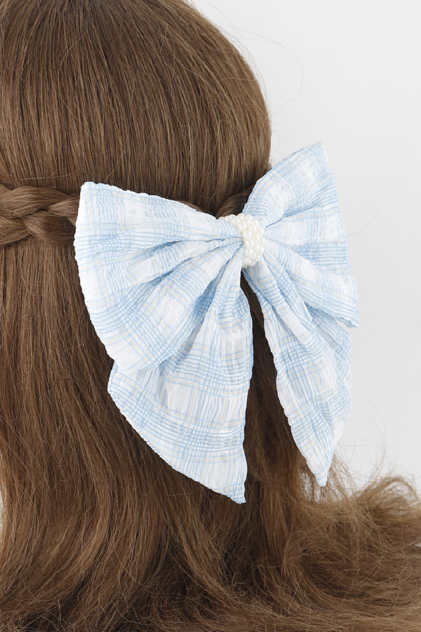 - Dress up your hair with the Plaid Pearl Ribbon Hair Clip from 3AM BY H&D ACCESSORIES. This chic accessory features a classic plaid pattern adorned with a string of pearls, adding a touch of elegance to any outfit. Measuring approximately 6 x 6", it's the perfect size to secure any hairstyle while making a fashion statement. Ideal for women who appreciate boutique-style accessories. Add this stylish hair clip to your collection and elevate your everyday looks.