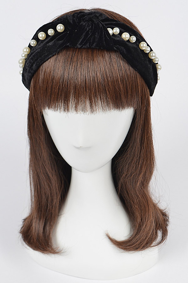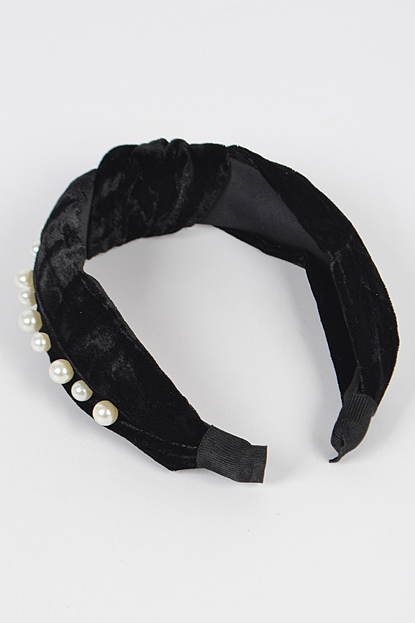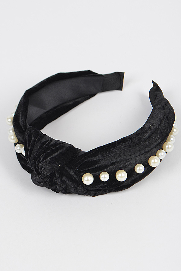 - * Velvet Knotted Headband W/Faux Pearl and Metal