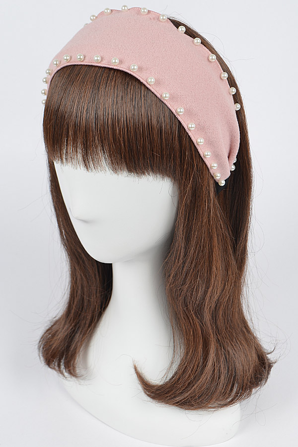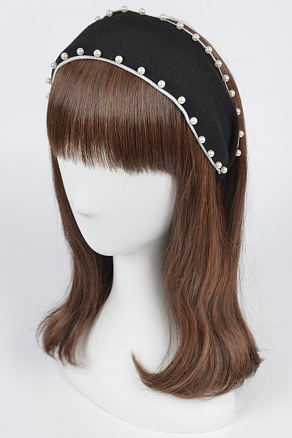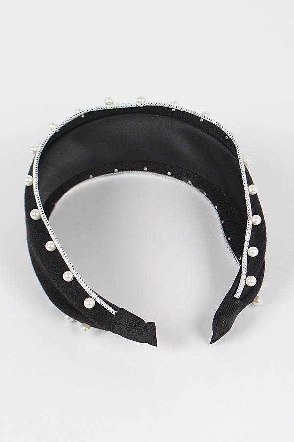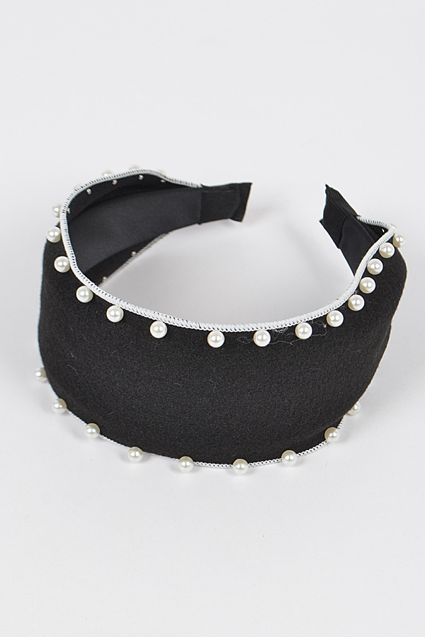 - * Polyester Headband W/Faux Pearl
