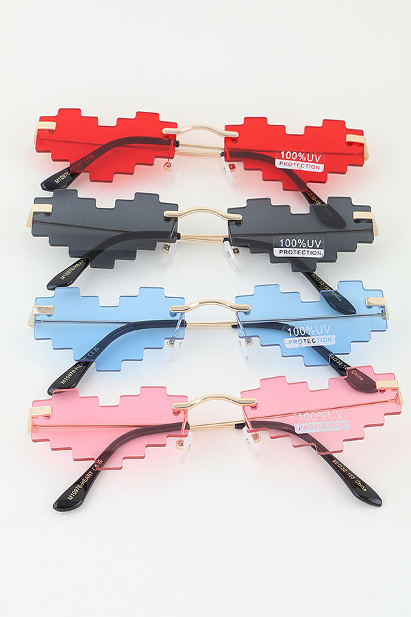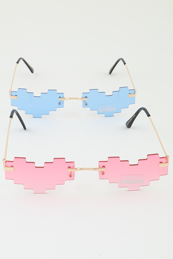 • * These are Bright Block Heart Sunglasses from H&D Accessories. They feature a unique block - style heart design that gives them a playful and trendy look. You can wear them when going to a themed party, as they will add a touch of fun and vibrancy to your outfit, making you stand out in the crowd with their distinctive heart - shaped, blocky appearance.