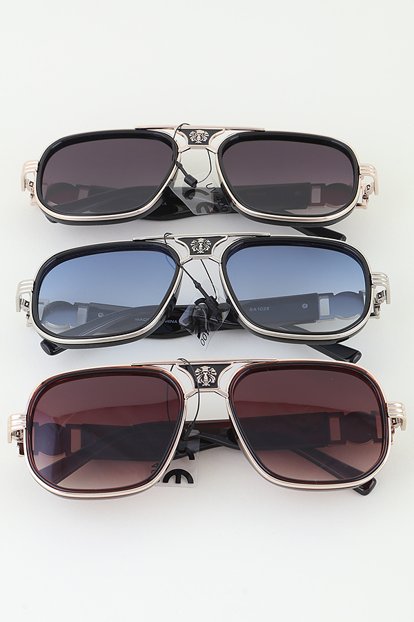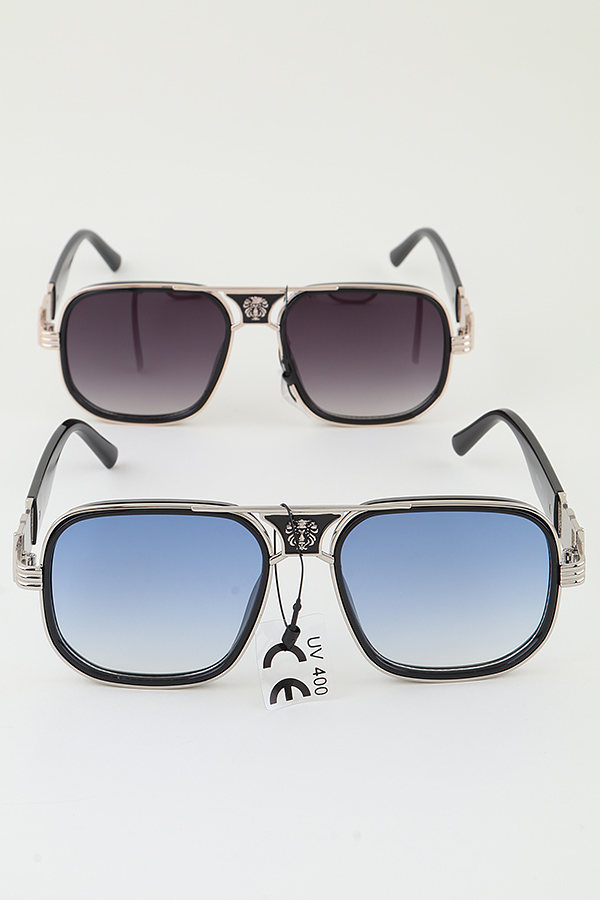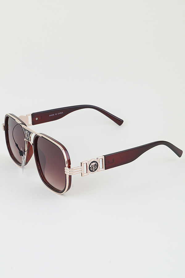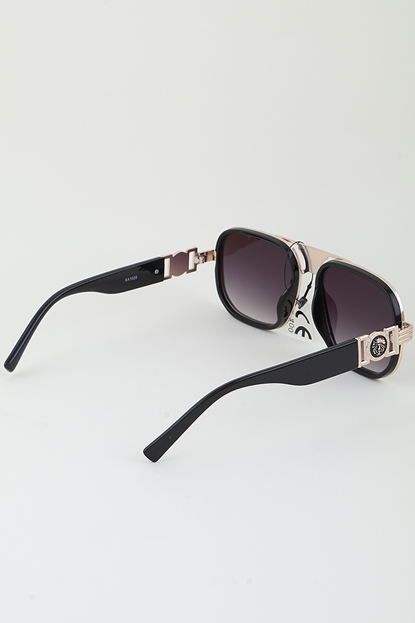 • * These are Chic Lion Emblem Aviator Sunglasses from H&D Accessories. They feature an aviator - style frame adorned with a distinctive lion emblem detail. The design combines sleek metal elements with acetate arms, creating a stylish and sophisticated look that stands out.