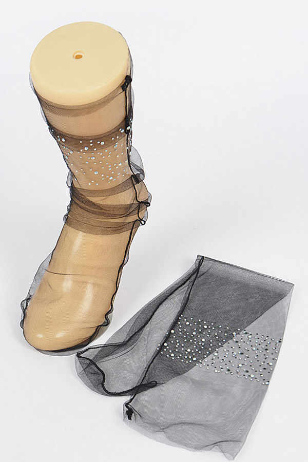 • * Rhinestone Mesh Socks