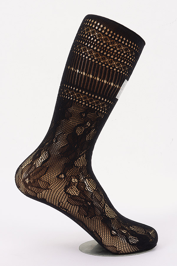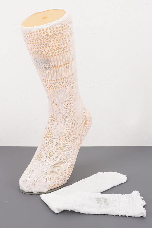 - * These are stylish Cotton Stretch Socks from H&D Accessories. They feature an elegant lace pattern with intricate perforations, combined with a distinctive label detail. The socks offer a comfortable stretch fit, making them suitable for various occasions. You can wear them with dresses or skirts for a chic look in daily life, such as when going to a casual brunch with friends or attending a small social gathering. The set includes a pair of knee-high socks and a pair of shorter socks, providing versatility in your wardrobe choices.