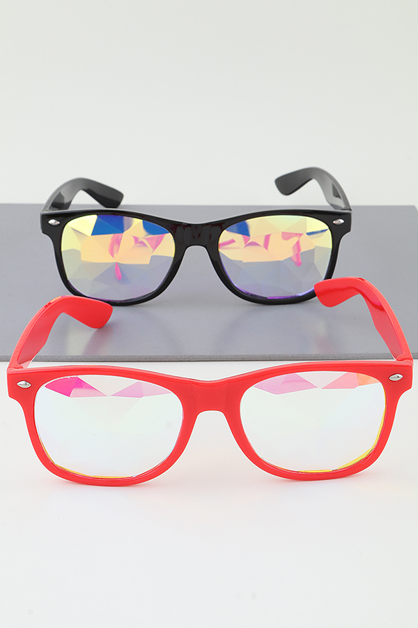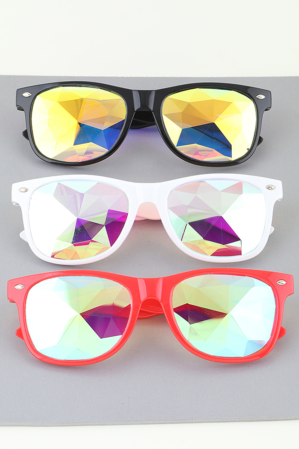 - * Luminescent Crystal Wayfarer Sunglasses from H&D Accessories feature a classic wayfarer frame design. The lenses boast a unique luminescent crystal pattern, creating a kaleidoscopic visual effect. Lightweight and stylish, they blend retro wayfarer charm with a fun, eye - catching twist. Perfect for adding a playful, trippy vibe to music festivals, raves, or outdoor concerts. Ideal for beach parties, summer carnivals, or creative photo shoots. Also great for casual outings where you want to stand out, letting you showcase the luminescent crystal lenses while shielding eyes from the sun.