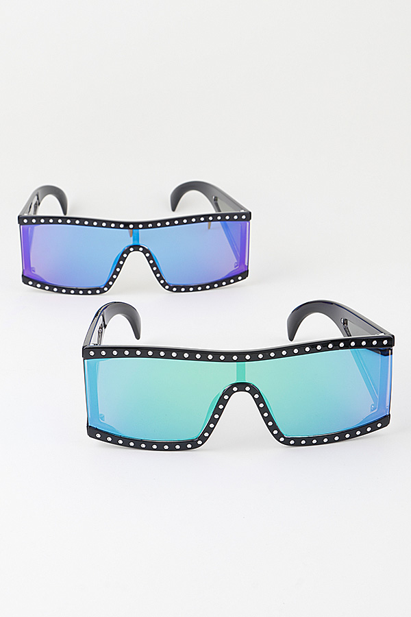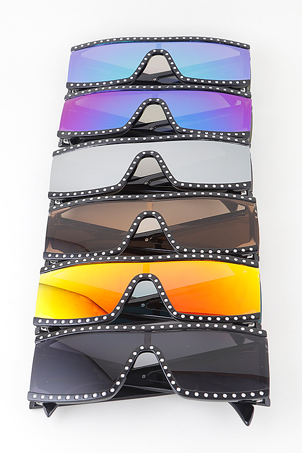 - * Introducing the vibrant and stylish "ColorGems Sunglasses" by H&D Accessories! These Bejeweled Flat Tinted Sunglasses are the perfect accessory to elevate your fashion game. With a row of sunglasses featuring different colors, you can effortlessly express your unique style and stand out from the crowd. Whether you're lounging by the pool or strolling through the city, our ColorGems Sunglasses will add a touch of glamour to any outfit. Get ready to shine and make a statement with H&D Accessories' ColorGems Sunglasses!