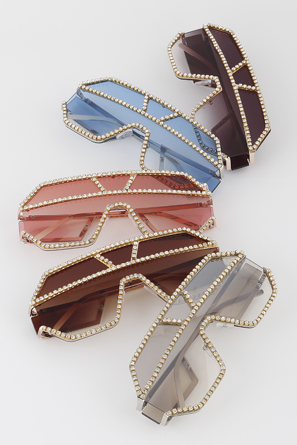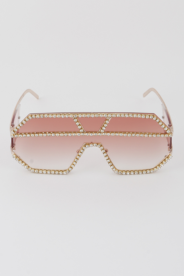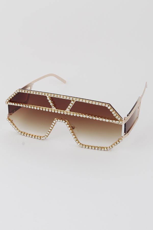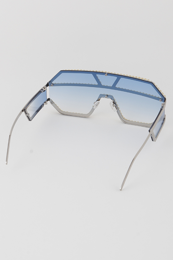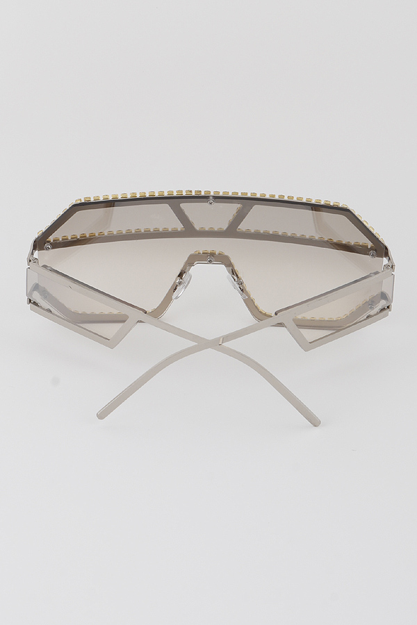 - * Geometric Jewel Lined Shield Sunglasses