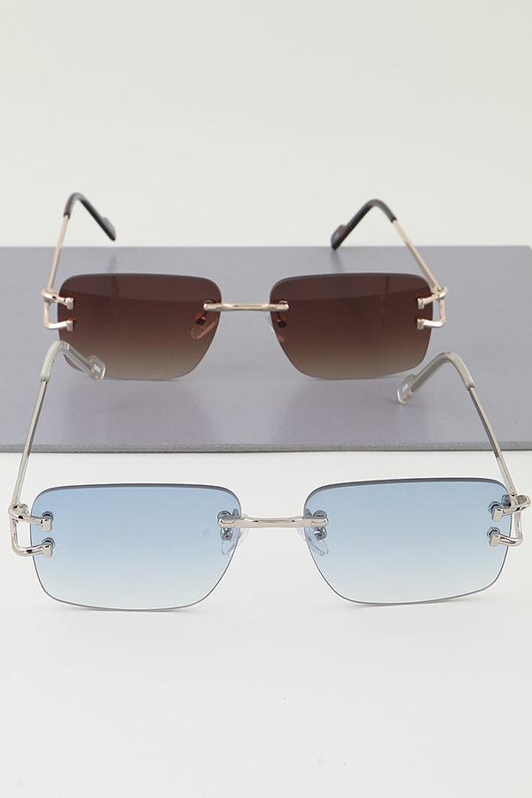 - * Here are four pairs of Classic Chrome Rimless Sunglasses. They feature a sleek, rimless design with distinctive metal hinges. These stylish sunglasses, From H&D Accessories, are perfect for adding a touch of modern flair to any look.