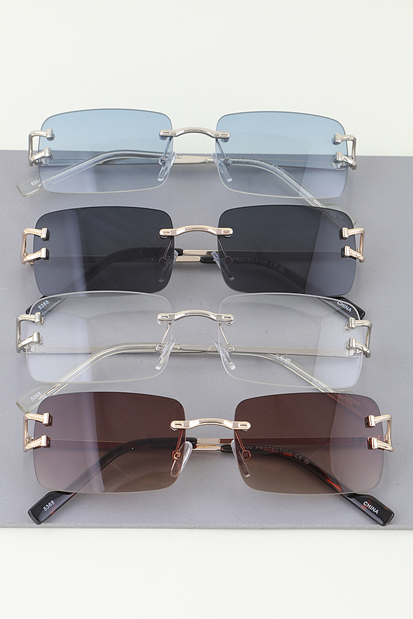 - * Presented here are four pairs of Wide Metal Rimless Sunglasses from H&D Accessories. Each pair showcases a sleek, rimless design, with wide - set metal frames that exude a sense of modern sophistication. The metal components, including the hinges and bridge, are crafted to be both sturdy and stylish, ensuring a comfortable fit while making a bold fashion statement. These sunglasses combine contemporary aesthetics with practical design, ideal for those seeking to elevate their accessory collection.