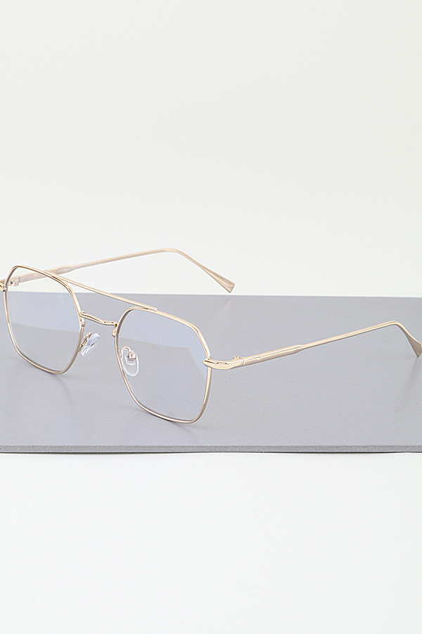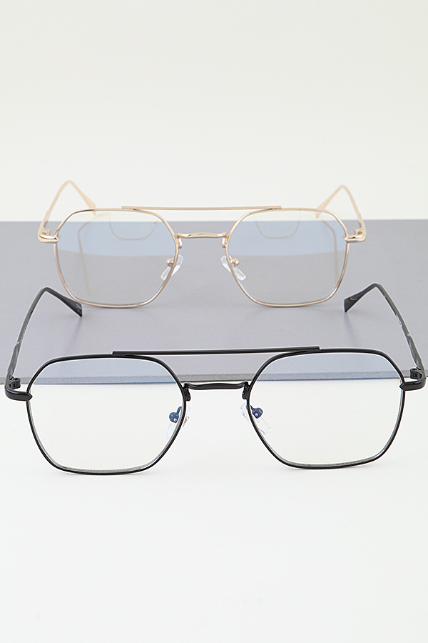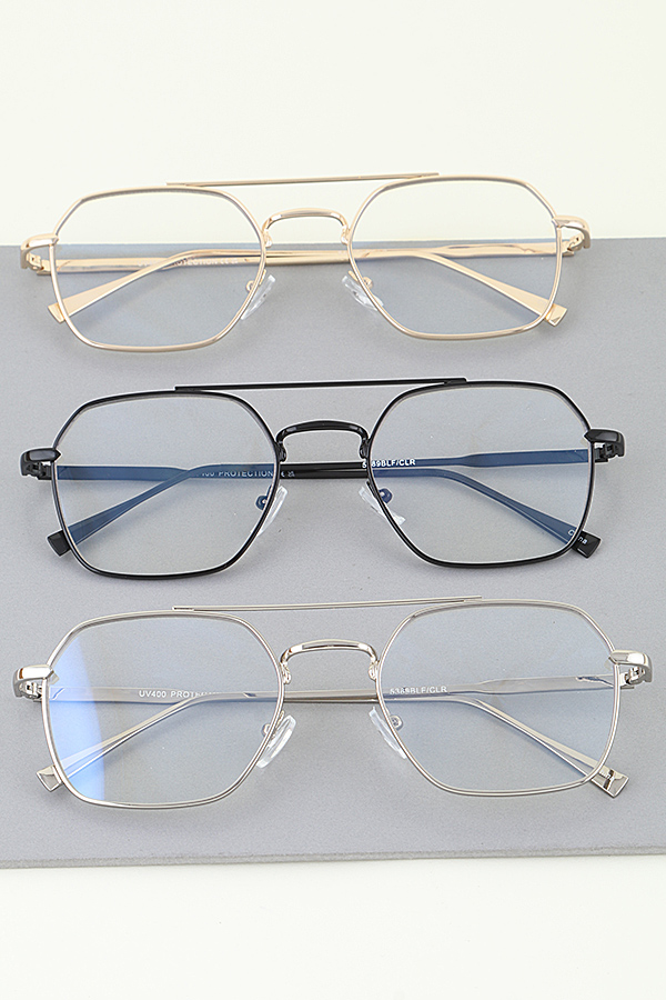 - * This Modern Blue Light Blocker Aviator Sunglasses from H&D Accessories features a sleek aviator frame with a geometric octagonal lens shape, crafted from thin metallic wiring. The design includes clear blue-light-blocking lenses (marked with UV400 protection) for dual functional care, paired with polished hardware at hinges and a streamlined top bar. Lightweight temples and adjustable nose pads ensure customized comfort, merging classic aviator elements with modern eye-protective design— a refined, everyday accessory.