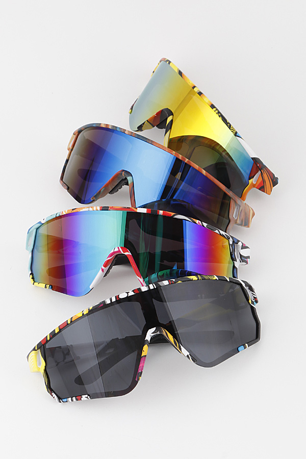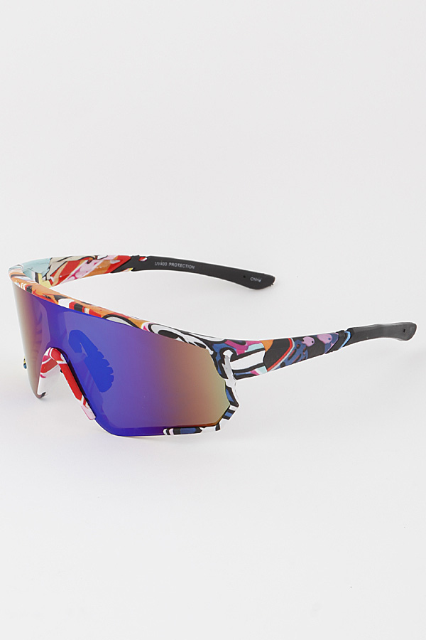 - * Multi Art Wrap Shield Sunglasses