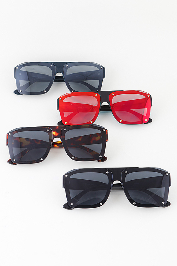 - * Multi Tinted Lens Bolted Box Sunglasses