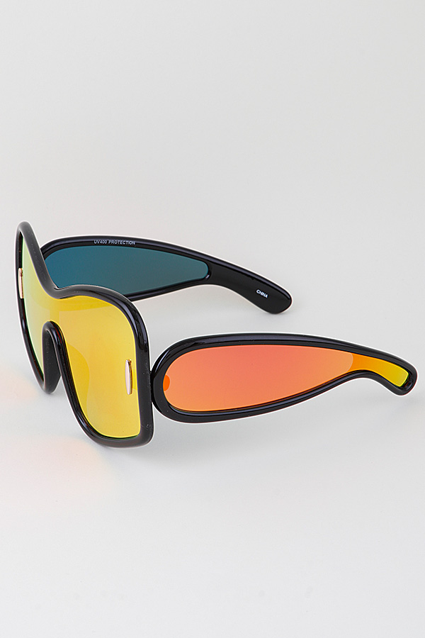 - * Introducing the vibrant and stylish "Wavy Polycarbonate Shield Sunglasses" collection by H&D Accessories! Elevate your look with our trendy sunglasses featuring a variety of colors to suit every style.