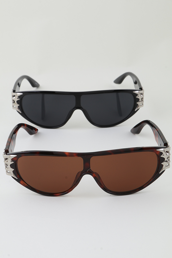 - * These are a set of Chic Grunge Shield Sunglasses from H&D Accessories. Featuring a bold shield-style design with edgy metal detailing on the sides, they embody a unique blend of chic and grunge aesthetics. They are perfect for various scenarios: you can rock them at a underground music concert to showcase your alternative style, while exploring a vintage market to add a rebellious touch to your outfit, or even when going for a skate session at the park to stay stylish while protecting your eyes from the sun. These sunglasses not only offer ample sun protection but also serve as a statement piece that can effortlessly elevate any look, making you stand out with confidence and a distinctive sense of fashion wherever you go.