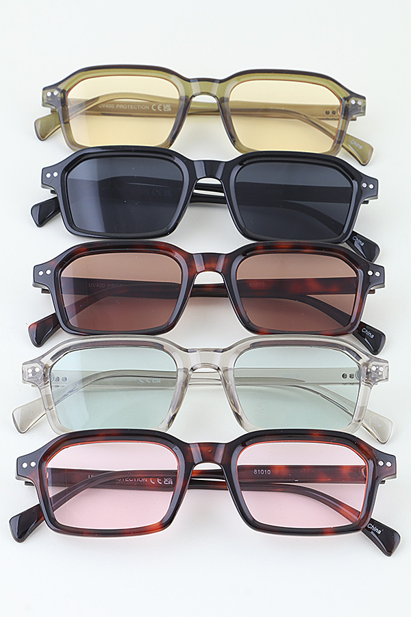 - * These Modern Double Bolted Box Sunglasses from H&D Accessories feature a bold, structured square frame with subtle double-bolt details at the temples, paired with tinted lenses that offer UV protection and a sleek, modern look. Available in a range of classic and vibrant finishes, they are perfect for city street style, weekend brunch dates, or casual outings, adding a contemporary, polished touch to any outfit.