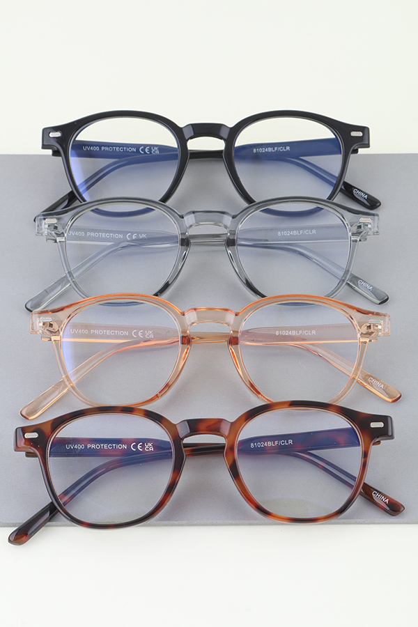 - * Modern Blue Light Blocker Round Optical Glasses from H&D Accessories combine classic round frames with advanced blue light filtering technology, offering UV400 protection to reduce digital eye strain. Ideal for office work, online learning, or late-night browsing, these glasses provide a comfortable fit and clear vision during extended screen time. The lightweight, durable construction ensures all-day wearability, making them a versatile and stylish accessory for modern daily life.