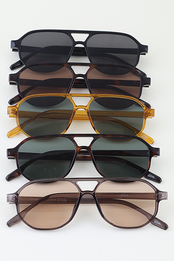- * These Straight Aviator Tinted Sunglasses from H&D Accessories feature a classic double-bridge frame and UV400 protection, merging timeless aviator style with modern eye care. Perfect for weekend getaways, city commutes, or beach afternoons, they offer a sleek, structured silhouette while shielding eyes from harsh sunlight. Their streamlined design effortlessly complements casual and polished looks, making them a versatile staple for sunny, stylish days.