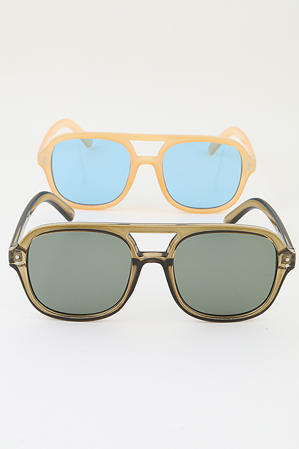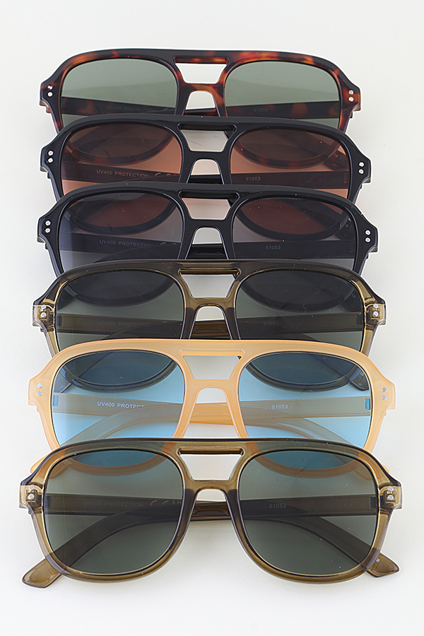 - * Double Bolted Straight Aviator Sunglasses from H&D Accessories feature a bold double-bridge frame with metallic bolt accents, available in tortoiseshell, black, amber, and translucent finishes. Equipped with UV400 protective lenses, they shield eyes from harsh rays while exuding retro-modern edge. Ideal for weekend getaways, beach days, street style shoots, or casual outings—pair with leather jackets, linen shirts, or oversized outerwear for a standout, effortlessly cool look that transitions seamlessly from day to night.