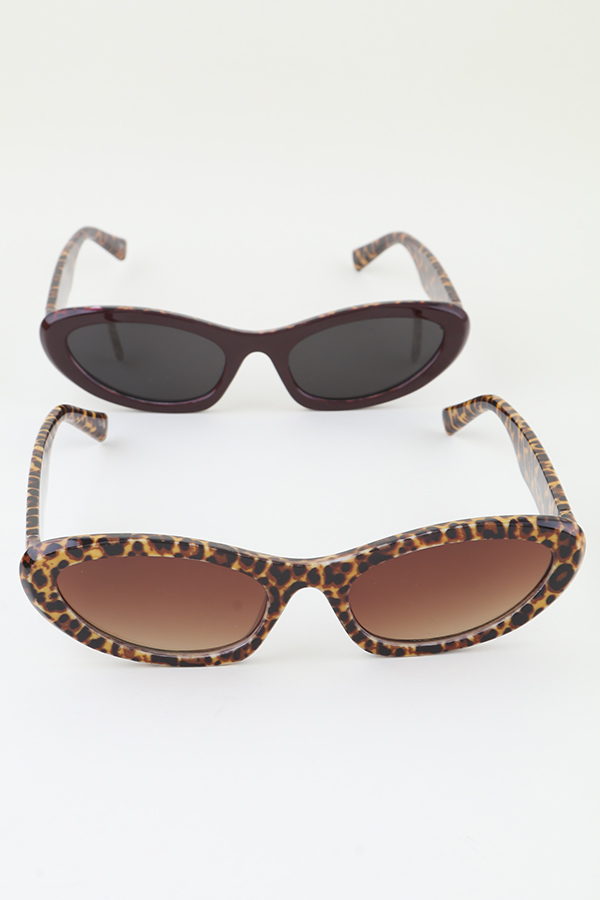 - * Two Toned Leopard Print Sunglasses from H&D Accessories feature a striking two-toned design with a bold leopard print pattern, blending retro-inspired charm with modern flair. The narrow, oval frame offers a sleek silhouette, while the UV-protective lenses ensure reliable sun safety for all-day wear. Lightweight and comfortable, these sunglasses are perfect for adding a playful edge to casual outings, music festivals, or weekend brunch dates. Whether you’re strolling through a vibrant market or soaking up the sun at a beachside café, these sunglasses deliver a bold, eye-catching statement that effortlessly elevates any look.