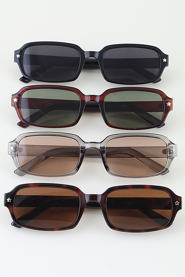 - * These Star Bedazzled Sunglasses from H&D Accessories feature a sleek rectangular frame with delicate star accents and UV400 protection, blending minimalist design with playful detail. Ideal for city walks, café meetups, or weekend getaways, they offer a polished silhouette while shielding eyes from bright sunlight. Their star-adorned structure adds a subtle sparkle to any outfit, making them a versatile accessory for effortless, sunlit style.