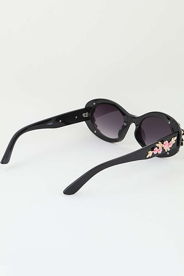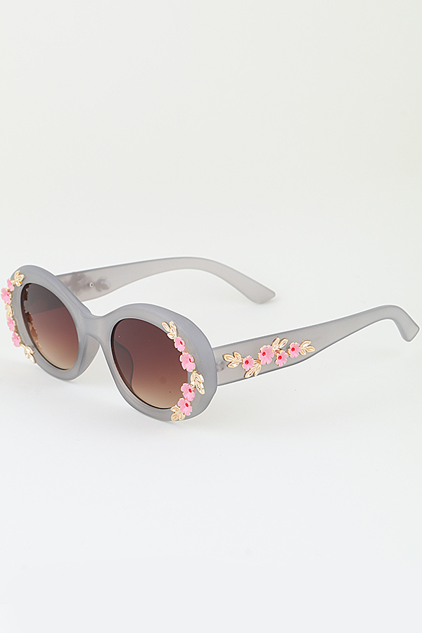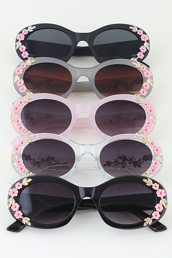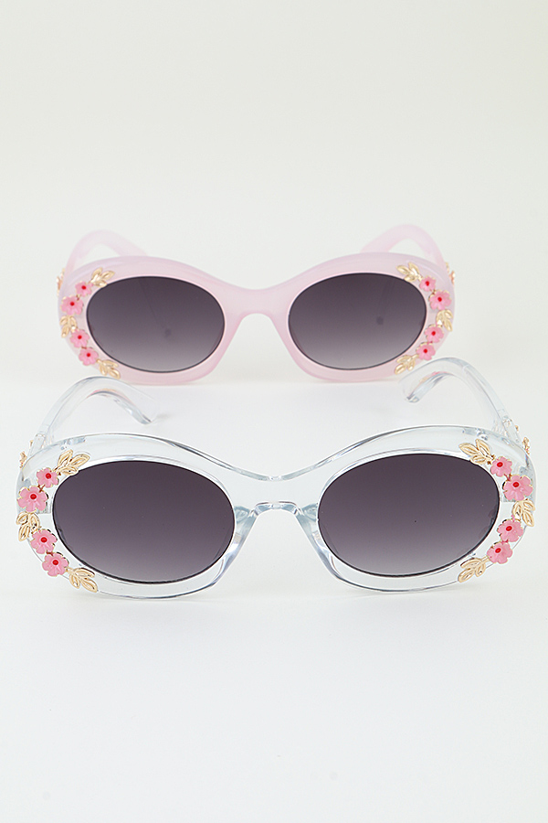 - * These Flower Vine Round Sunglasses from H&D Accessories feature a delicate oval-round frame silhouette adorned with intricate floral and leaf appliqués along the front edges and temple arms, creating a whimsical, romantic aesthetic, while the lenses offer reliable UV400 protection to shield eyes from harmful solar radiation, with a lightweight and smooth frame construction that ensures comfortable all-day wear, making them ideal for garden parties or feminine, playful street-style looks.