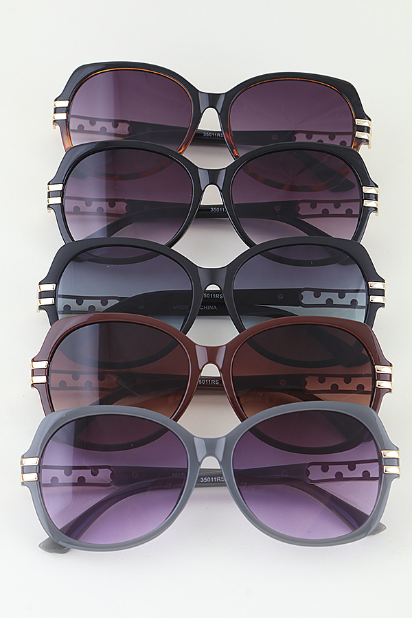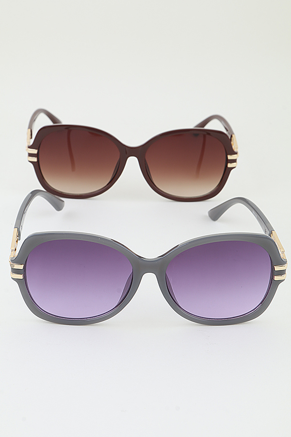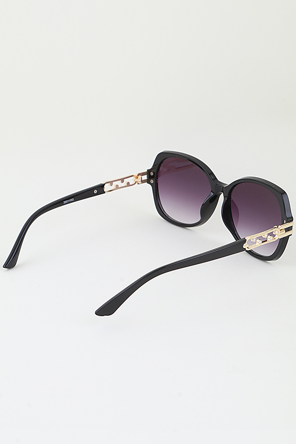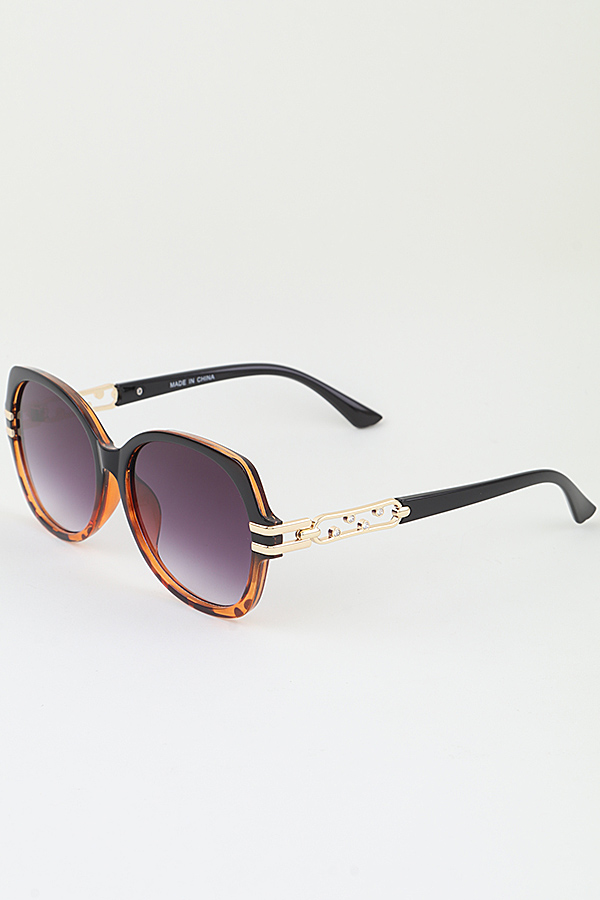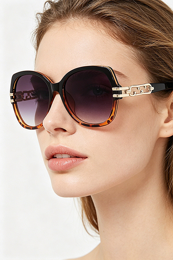 - * These Bejeweled Chain Gradient Round Sunglasses from H&D Accessories feature a timeless, rounded oval frame with a smooth, durable finish, accented with polished gold-toned chain-inspired hardware at the frame corners and decorative dotted cutout details along the inner temples for a luxurious, eye-catching touch, fitted with gradient lenses that offer full UV 400 protection to shield eyes from harmful sun rays, available in a range of vibrant frame and lens color combinations, lightweight and comfortable for extended wear, perfect for elevating summer outfits, beachwear, vacation looks, or everyday street style for a chic, versatile aesthetic.