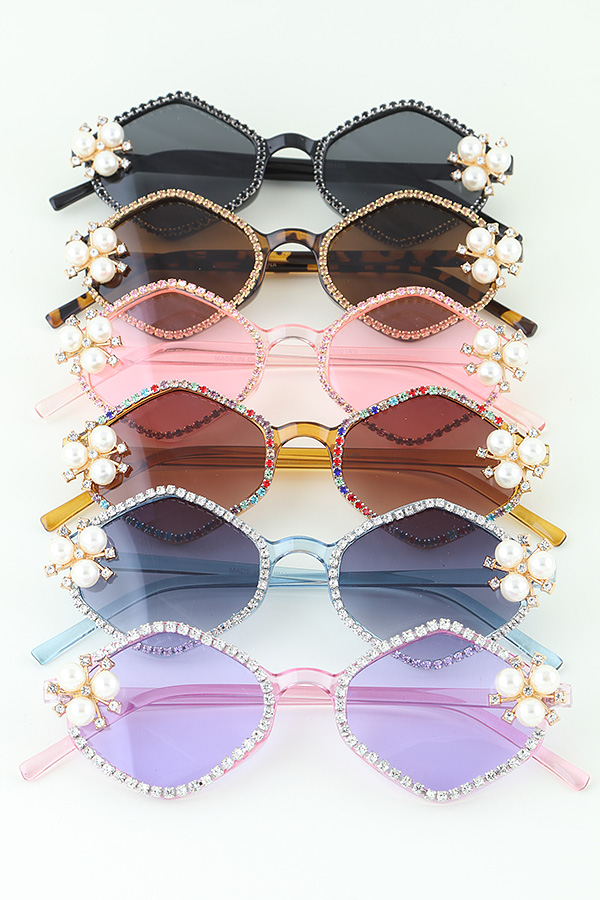 - * Introducing the "Crystallized Diamond Sunglasses" – where elegance meets sparkle! Adorned with exquisite rhinestones and pearls, these sunglasses are designed to elevate your style and make a statement. Perfect for those who want to shine bright in any setting, the Crystallized Diamond Sunglasses from H&D Accessories is your go-to for luxurious eye protection.
