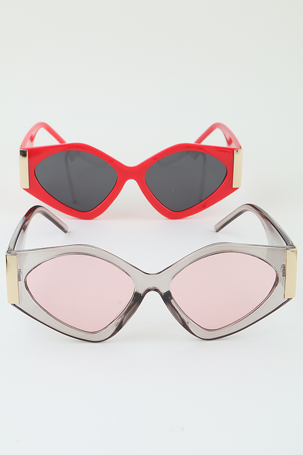 - * These are Modern Bar Diamond Cut Sunglasses from H&D Accessories. They feature a chic, cat - eye frame design with metal bar accents and diamond - cut details. Each pair has a sophisticated, trendy look, perfect for adding a touch of elegance to outfits. Ideal for stylish outings like brunch dates, cocktail parties, or fashion events. The modern bar and diamond - cut elements make them a standout accessory to elevate both casual and dressy ensembles while shielding eyes from the sun.