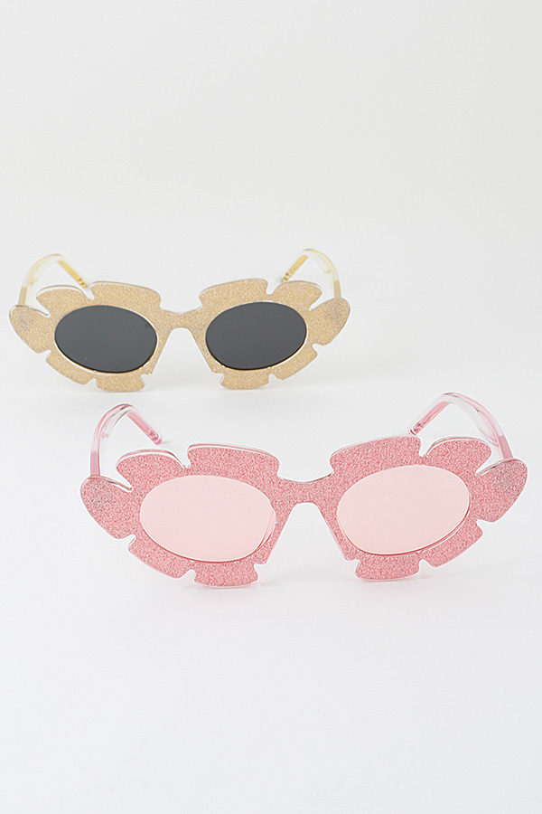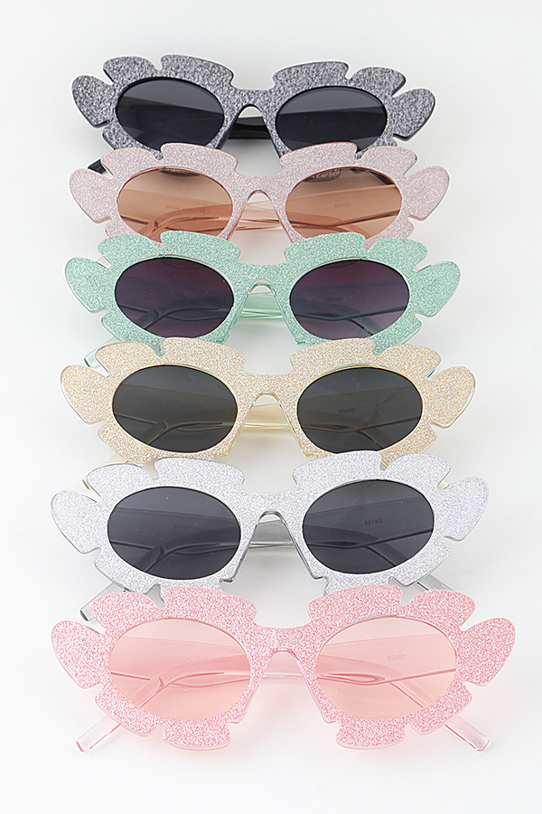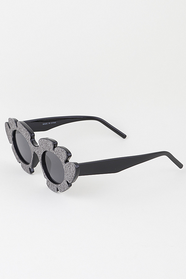 - * Introducing the "Flower Glitter Round Sunglasses" from H&D accessories! Elevate your style with these glamorous shades that feature a unique glitter design and a trendy cat eye shape.