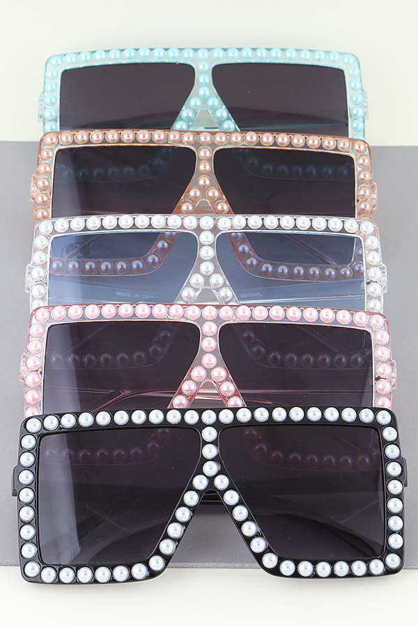 - * Pearl Beaded Shield Sunglasses