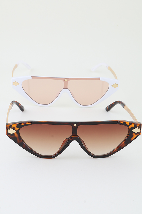 - * These are Look Right Here Sunglasses from H&D Accessories. They feature a bold, cat - eye frame design with distinctive arrow - shaped accents. Each pair has a striking, attention - grabbing look, perfect for making a fashion statement. Ideal for standout outings like music festivals, fashion shows, or street - style photo shoots. The unique frame and arrow details make them a must - have accessory to add an edgy, eye - catching element while shielding eyes from the sun.