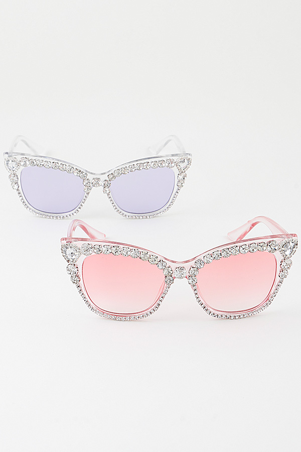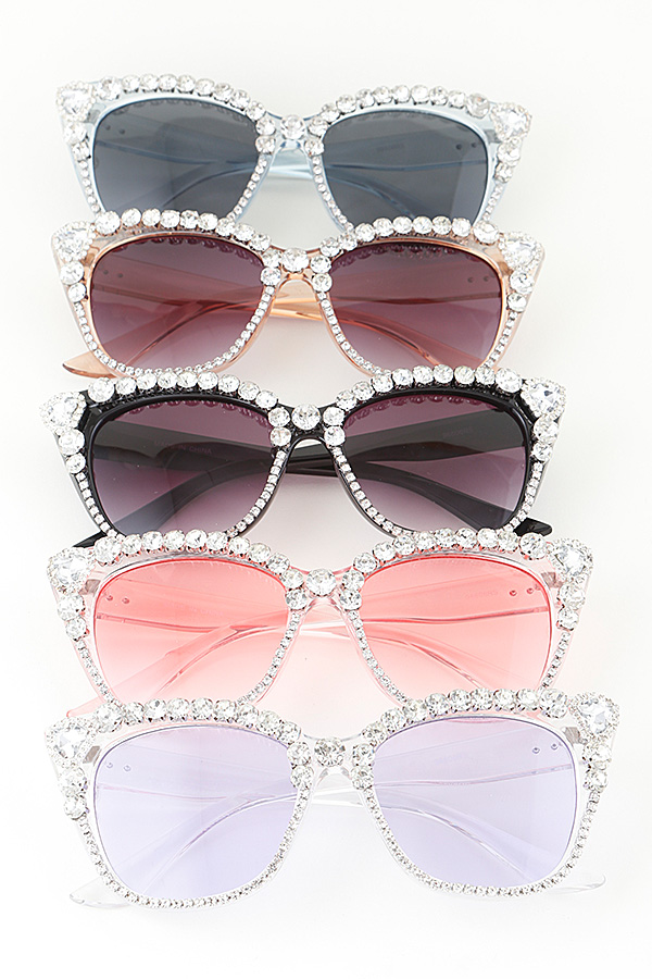 - * Discover the "Sparkle Vision Cat Eye Sunglasses" – where chic meets sparkle! These eye-catching sunglasses are adorned with shimmering rhinestones, ensuring you stand out in any crowd. With their unique cateye shape and vibrant design, these bright bedazzled sunglasses from H&D Accessories are a must-have for anyone looking to add a touch of glamour to their wardrobe.