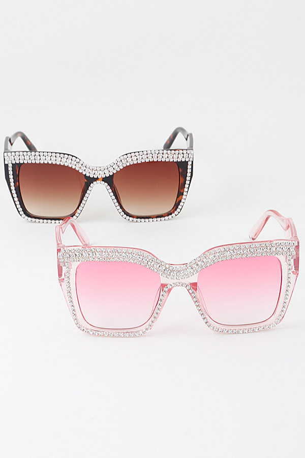 - * Rhinestone Bejeweled Cateye Sunglasses