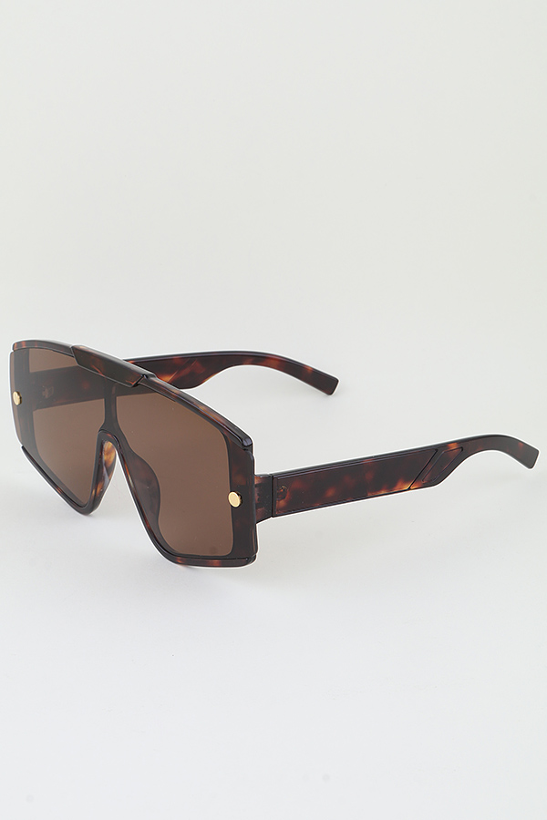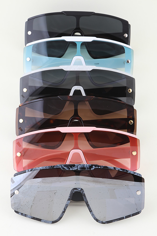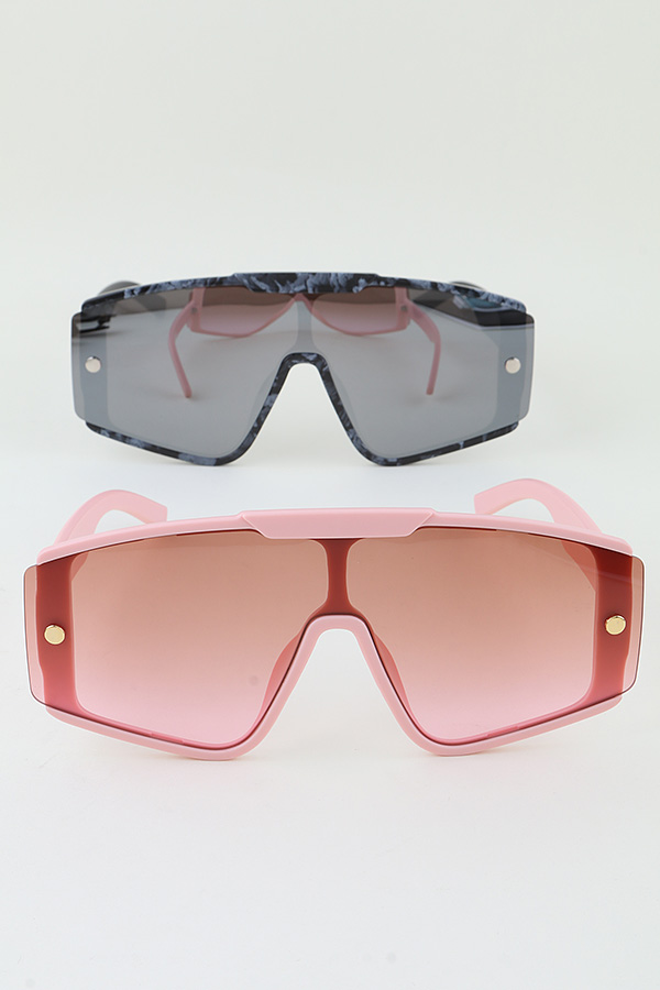- * These Modern Bolted Shield Sunglasses from H&D Accessories are a bold and contemporary accessory. They feature a large, shield - shaped frame with a sleek design, accented by bolt - like details that add an edgy touch. The tinted lenses offer protection against the sun's rays while maintaining a fashionable look.