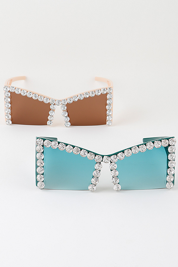 - * Elevate your look with the "Crystal Kaleidoscope" sunglasses from H&D accessories. These bejeweled, geometric cut sunglasses come in four dazzling colors, adding a touch of elegance and glamour to any outfit. Stand out from the crowd with these luxurious shades!