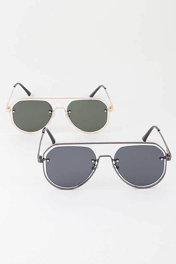 - * Open Wrap Around Aviator Bolted Gradient Thin Sunglasses