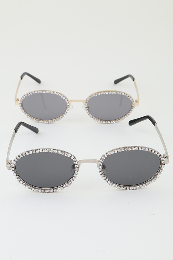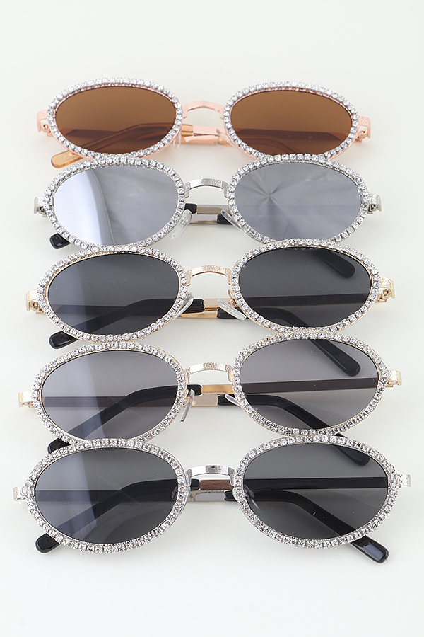 - * These are Jeweled Rhinestone Round Sunglasses from H&D Accessories. They feature a charming round - lens design, with each frame adorned by sparkling rhinestones along the edges, adding a touch of glamour. The sunglasses are neatly stacked, showcasing a consistent and elegant silhouette. The temples are structured, complementing the overall stylish and luxurious look.
