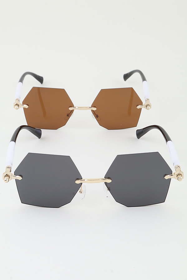 - * The Rimless Hexagon Gradient Sunglasses from H&D Accessories are stylish and modern. They feature a unique rimless hexagon frame with gradient lenses, giving them a sleek and fashionable look. These sunglasses are perfect for outdoor activities such as beach outings, driving, or casual strolls, providing both fashion and protection from the sun.