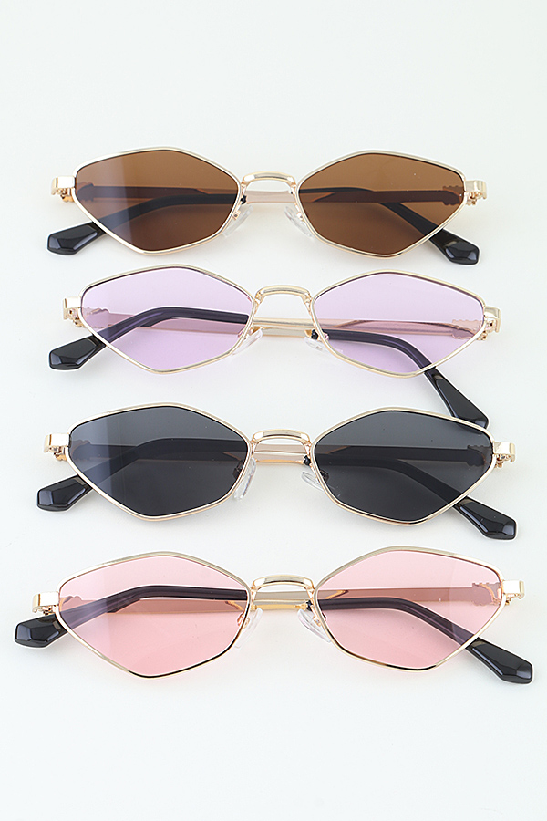 - * These MW Minimal Diamond Cut Sunglasses from H&D Accessories showcase a sleek, angular diamond-shaped frame design crafted with a polished metallic finish, embodying modern minimalism and edgy sophistication. The slender, streamlined temples feature subtle decorative detailing at the hinges, adding a refined touch while ensuring a lightweight, comfortable fit, and the precisely cut lenses offer both functional sun protection and a striking visual statement. Perfect for adding a bold, fashion-forward accent to street style looks or elevating evening ensembles.