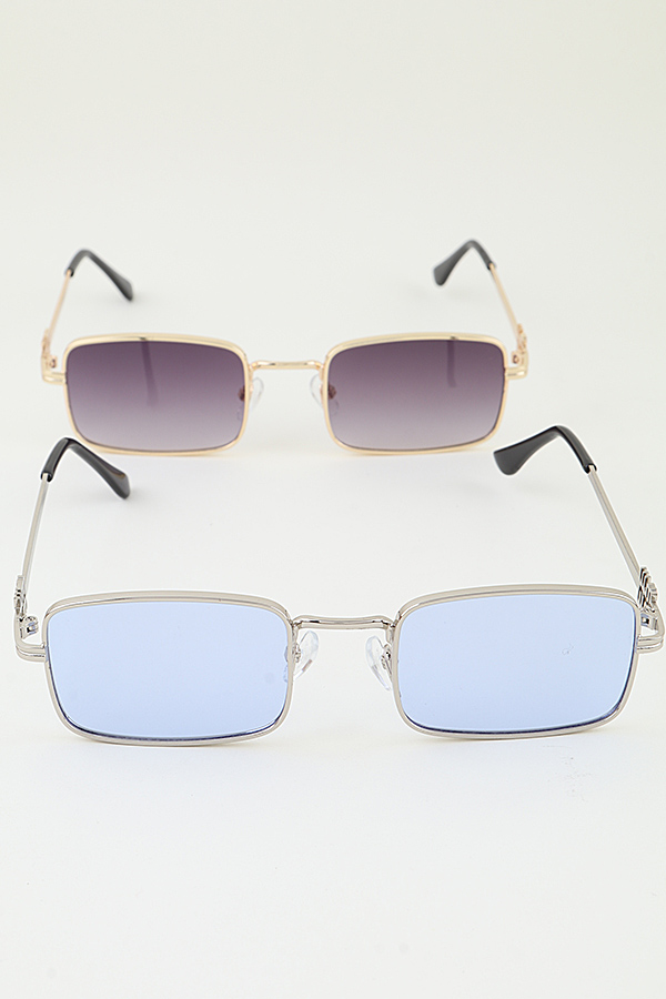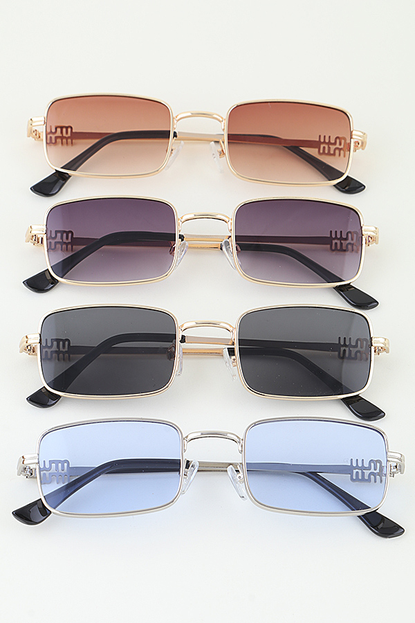 - * These MW Minimal Box Gradient Sunglasses from H&D Accessories feature a sleek rectangular box frame with a polished metallic finish, embodying a clean, minimalist aesthetic. The gradient lenses offer a smooth transition in tone while providing effective sun protection, and the slender temples are adorned with intricate decorative detailing at the hinges, adding a subtle touch of elegance without compromising the streamlined design. The curved earpieces ensure a comfortable, secure fit for extended wear, making them ideal for complementing casual daytime outfits or polished evening looks.