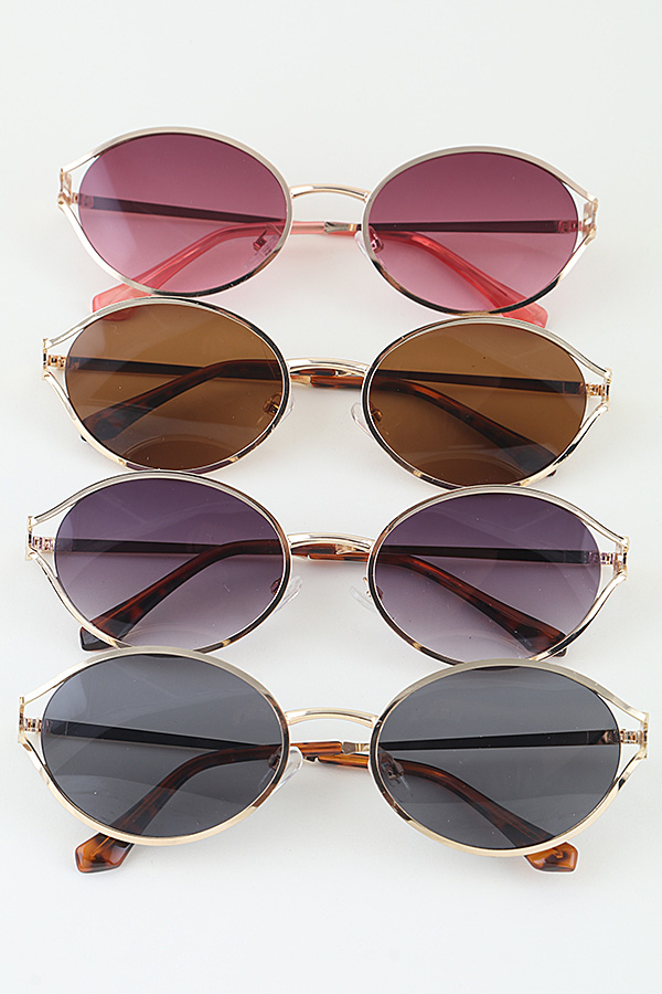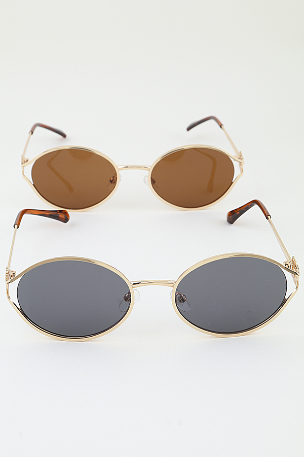 - * These MW Minimal Round Gradient Sunglasses from H&D Accessories boast a delicate, rounded frame crafted with a polished metallic finish, embodying a timeless minimalist charm. The gradient lenses offer a seamless tonal shift while providing reliable sun protection, and the slender temples are accented with intricate decorative detailing at the hinges, adding a refined, subtle elegance to the streamlined design. The curved, lightweight earpieces ensure a comfortable, secure fit for all-day wear, making them perfect for elevating casual daytime looks or adding a vintage-inspired touch to weekend outings.