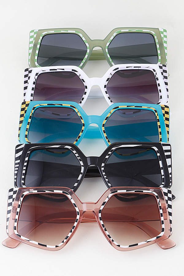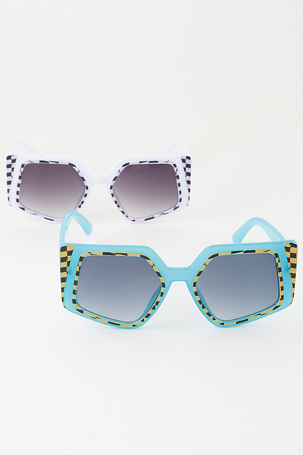 - * Unveil your style with "Chroma Frames" – a dazzling assortment of sunglasses featuring eye-catching colors and intricate patterns. The Double Checkered Geometric Sunglasses from H&D Accessories are perfect for those who dare to be different. Step into the spotlight and let your shades do the talking!
