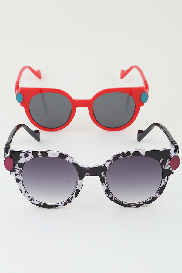 - * These are Triple Round Tinted Sunglasses from H&D Accessories. They showcase a creative design with round lenses and unique decorative details on the frames. The arms of the sunglasses have an eye - catching, playful structure, and the overall shape gives off a fun yet stylish vibe. Ideal for adding a touch of personality to your daily looks, these sunglasses can easily complement various outfits, whether you're out for a casual stroll or a weekend gathering.