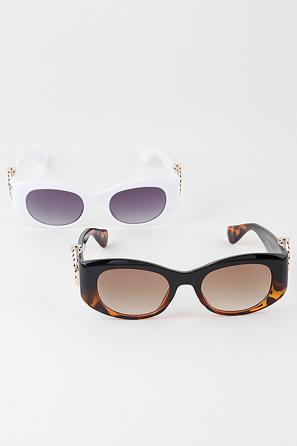 - * Presenting the "Curled Jaguar Minimal Oval Sunglasses" - a diverse selection of eyewear featuring various colors and shapes to suit every style and personality.