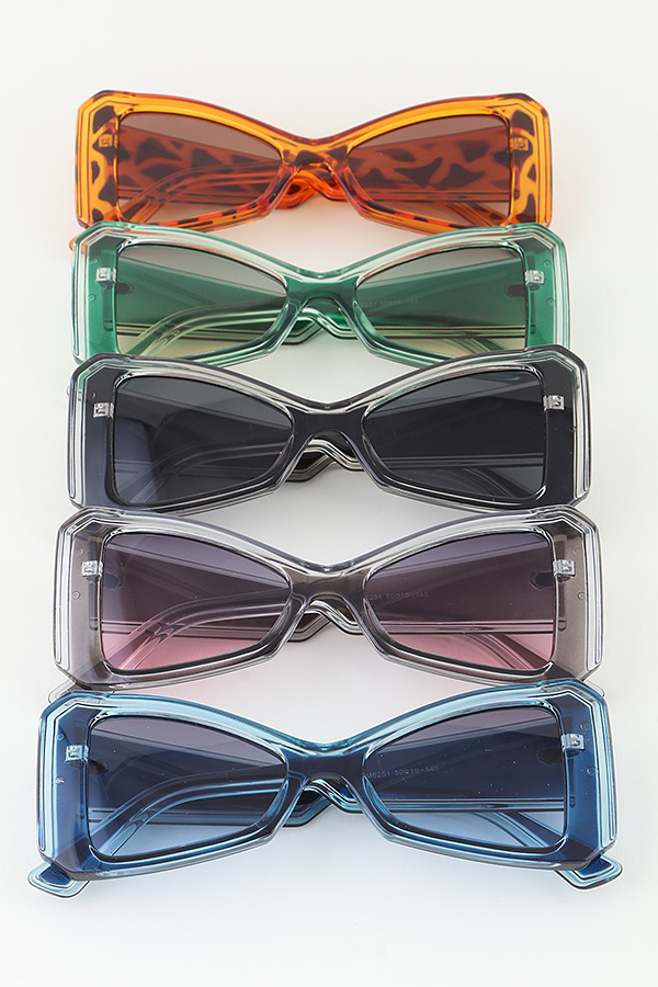 - * The Bright Gradient Geometric Sunglasses from H&D Accessories are a stylish and modern eyewear choice. They feature a unique geometric frame design with a bright gradient finish, giving them a trendy and fashionable look. These sunglasses are suitable for various outdoor activities such as beach outings, music festivals, and casual strolls, providing both fashion and function by protecting the eyes from the sun's glare.