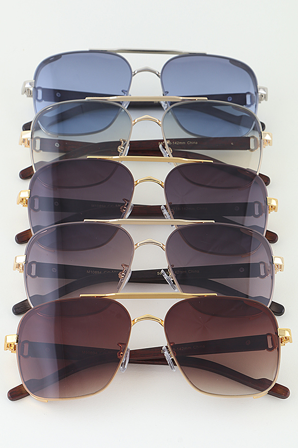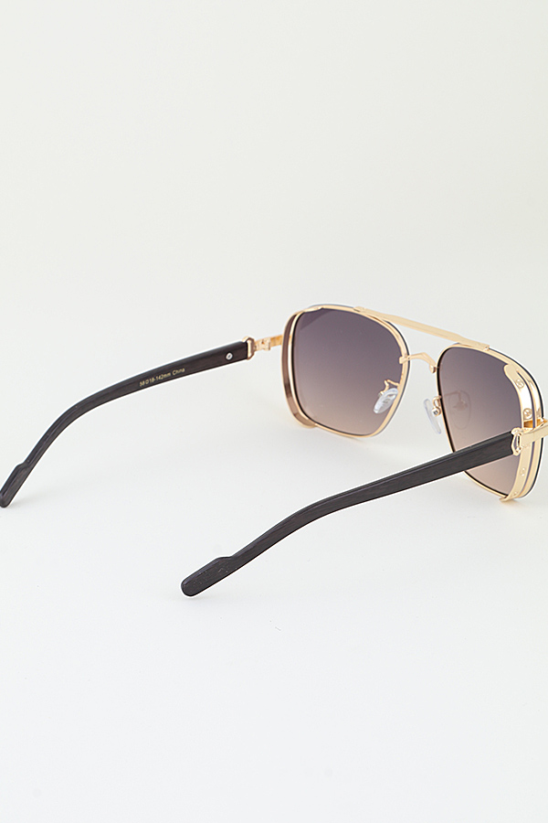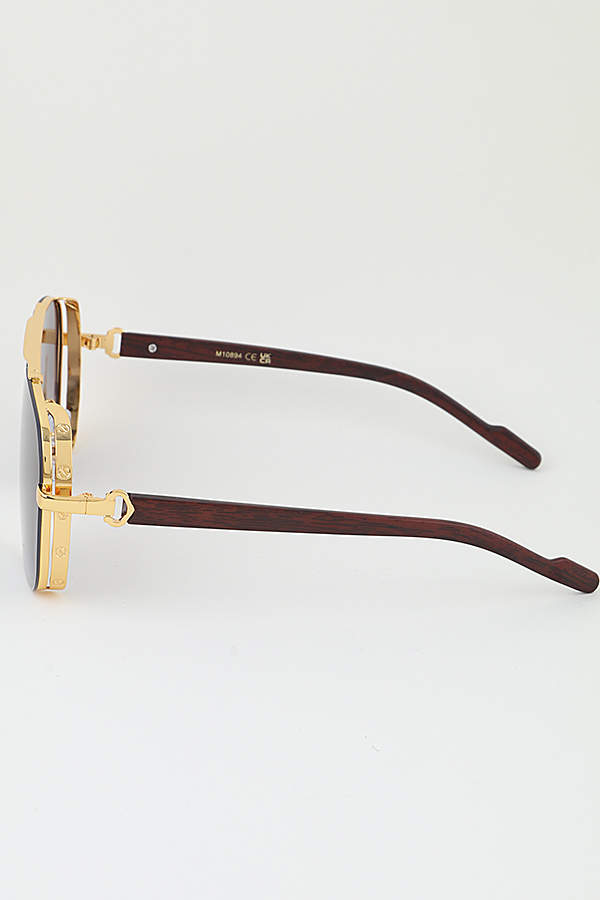 - * These Bolted Straight Aviator Sunglasses from H&D Accessories feature a sleek metal frame with a distinctive double bridge design, paired with polished wooden temple arms that showcase fine craftsmanship and durable construction. The lenses are shaped in a classic aviator silhouette, offering a timeless aesthetic while the precise bolted detailing on the frame edges adds a touch of refined edge, and the temples are engraved with subtle product specifications to emphasize quality and authenticity. Ideal for elevating your everyday look, these sunglasses are perfect for strolling through city streets or enjoying a leisurely weekend outing.