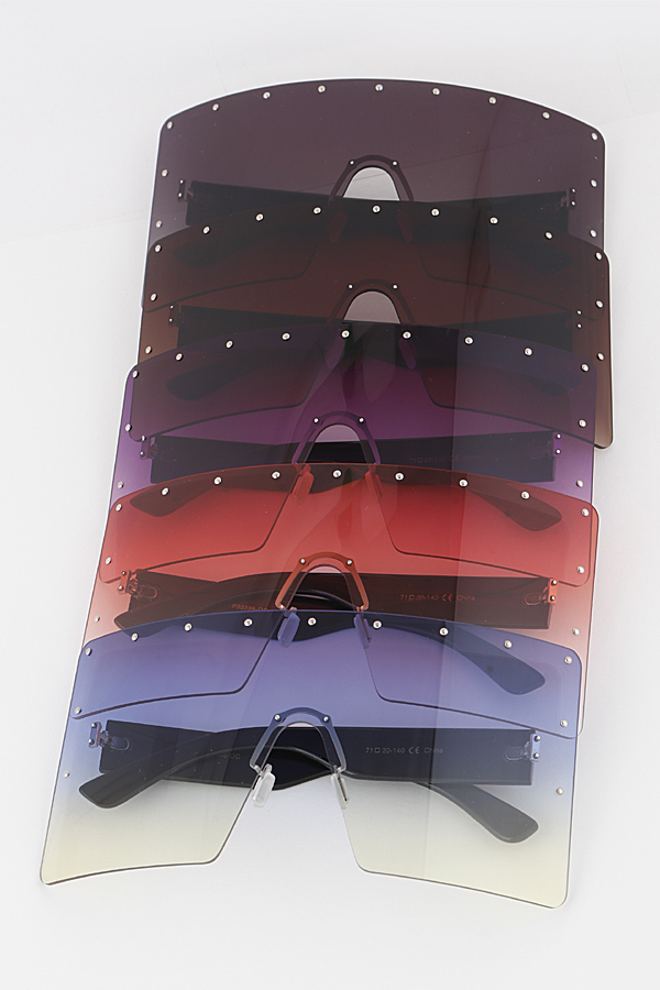 - * Curved Rimless Shield Sunglasses